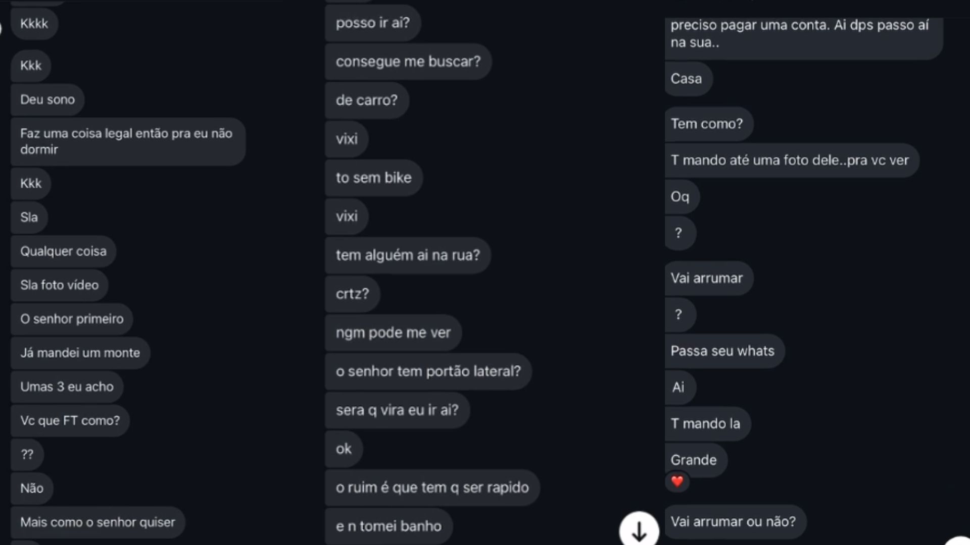 Registros de tela obtidos pela reportagem mostram o professor pedindo fotos íntimas aos alunos, que as compartilhavam em visualização única em troca de favores financeiros ou materiais. Para um dos estudantes, o professor perguntou: “O que você curte?”.