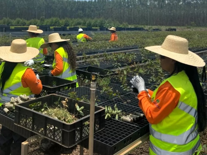 Ao direcionar esforços para a qualificação e a contratação de mulheres no viveiro, a companhia contribuiu para a reversão da queda de 10% no número de mulheres presentes em viveiros de mudas do setor entre 2021 e 2023, conforme informação do Panorama de Gênero 2023, elaborado pela Rede Mulher Florestal, associação não governamental da qual a Suzano faz parte, e que aborda questões de gênero com foco na inclusão de mulheres no setor florestal.